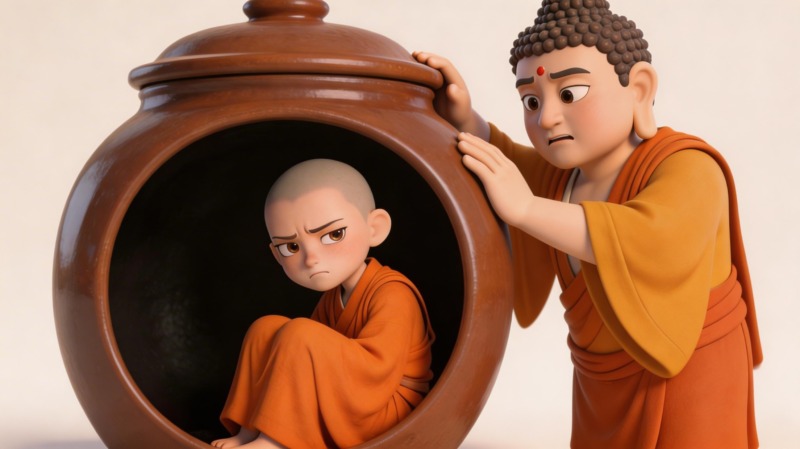 Let me share a simple example. Imagine that we are trapped inside a large jar. Inside the jar, everything is completely dark. We hear someone knocking on the jar from outside. If we push the lid from inside, we might be able to open it. But because we are afraid, we struggle to keep the lid closed. However, in reality, it was the Buddha knocking the jar from the outside, trying to help us.